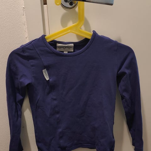 Myydään uutena ostettu, erittäin hyväkuntoinen, yhdellä lapsella käytössä ollut Gugguun kirkkaansininen paita, koko 98. Toisella olkapäällä nepit helpottamassa pukemista.