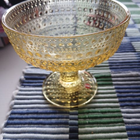 Iittala Kastehelmi jalallinen tarjoilukulho sininen lasi