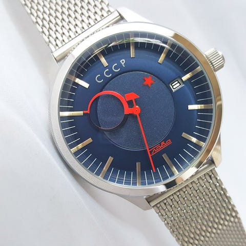 Uusi.€680,- vähittäishinta.Olemme korukellovalmistaja, joka myy vain uusia, eksklusiivisia tuotteita. Kaikilla tuotteilla on virallinen takuu, ja asiakirjat allekirjoitetaan ja leimataan omalla kelloseppätiimillämme.Ainutlaatuinen kellon CCCP-merkiltä. Kuuluisia liikkeistään vuodesta 1924 lähtien; inspiraationsa he ovat ammentaneet Neuvostokaudesta, kellonteon ikonista aikaa.Nykyään yhtiö ei ole enää venäläisten omistuksessa.Kello tulee erityisellä automaattisella Slava 2427 -liikkeellä. Tämä on ainutlaatuinen sen sisällä olevan kaksirunkoinen rakenteen vuoksi, jossa on 22 jalokiveä.Näiden liikkeiden suunnittelu oli jo tuotannossa Neuvostoaikana, ja ne ovat nykyään moderni versio. Liikkeet voidaan pitää korkealaatuisten ja kellotekniikan historian ikonisen osan.Rajoitettu erä, saat satunnaisen numeron väliltä 1 ja 400.Materiaalikotelo316L ruostumaton teräsLiikeAutomaattinen Slava 2427, kaksirunkoinen, 22 jalokiveäVaraus40 tuntia+Materiaalirannekello316L ruostumaton teräsAika-toimintoKylläMateriaalikristallinVahva mineraalilasiKotelon läpimitta42 mmLisävarusteetLaatikot ja asiakirjatToimitus vakuutettuna ja Track & Trace -koodilla.Kaikki uutta.