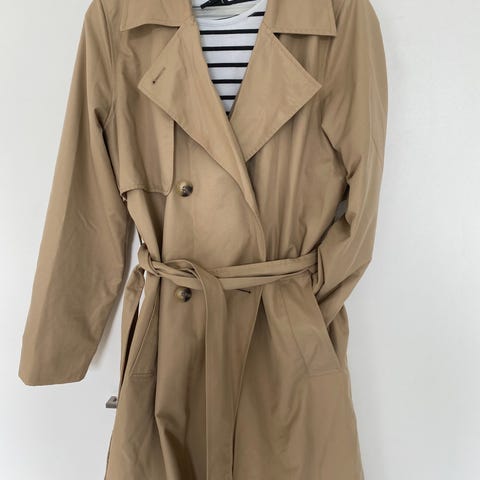 Object trenssi naisille, koko 44. Väriltään beige ja materiaaliltaan puuvillaa. Takissa on vyö vyötäröllä ja kaksirivinen nappikiinnitys edessä. Hihansuissa on nappikiinnitteiset tampit. Sopii käytettäväksi kevyenä päällystakkina eri vuodenaikoina.