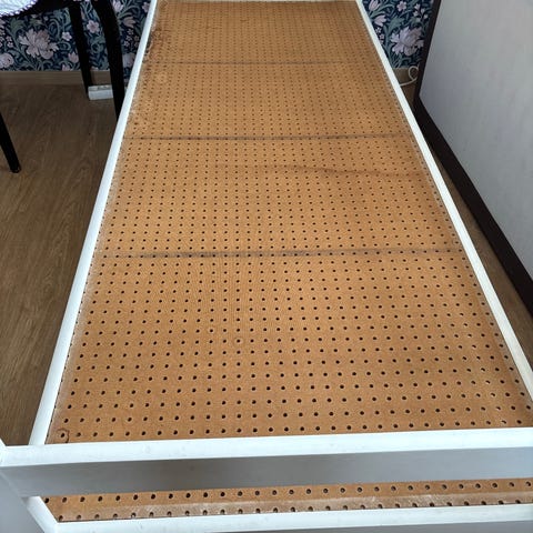 Annetaan 2 sängynpäätyä valoilla. On maalattu valkoisella, mutta vaatii kyllä kunnostusta, jotta saa taas siistit. Molemmilla puolilla hyllyt. Kissatalous.