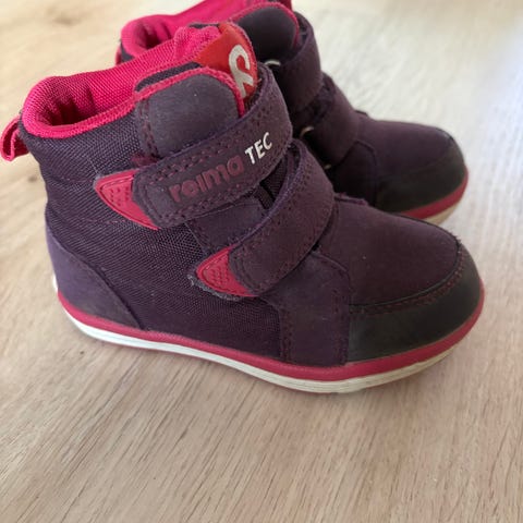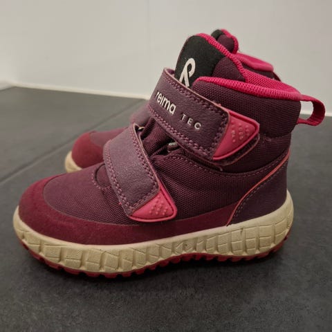 Hyvökuntoiset Reiman välikausikengät. Tarrojen pito hieman heikentynyt, mutta pysyvät testatessa hyvin kiinni. Pohjissa kantapään kohdalla kulumaa, ei vaikuta käyttöön. Yleisilmeeltään oikein siistit kengät. Testattu vedenpitäviksi juoksevan veden alla.
