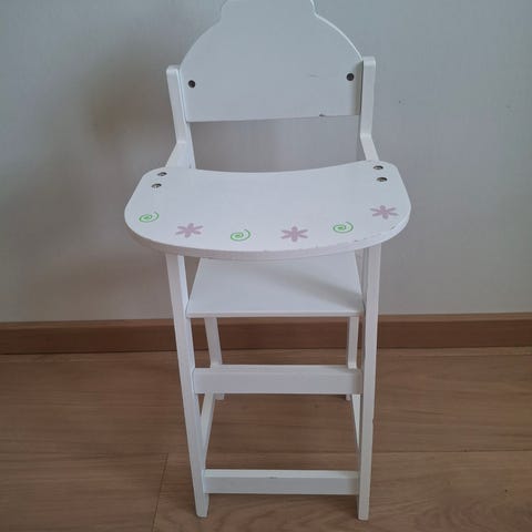 Myydään nuken sänky ja syöttötuoli.