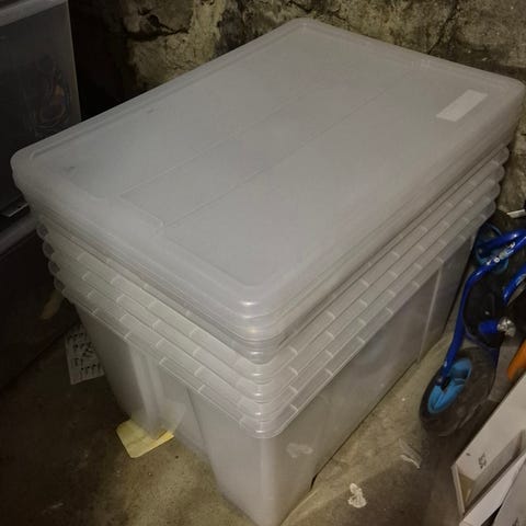 4 kpl Läpinäkyvä Ikean muovinen Samla säilytyslaatikko, koko 79x57x18 L. Hinta yht. 40 eur, uutena 80 eur.