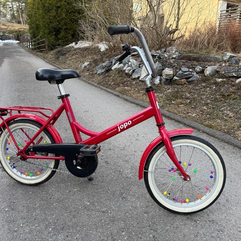Hyväkuntoinen lasten punainen 16 tuumainen Jopo kotia vailla - nouto Katajanokalta. Hieman käytönjälkiä & pientä kulumaa (kts kuva tavaratelineessä) mutta yleisesti oikein hyvässä kunnossa.