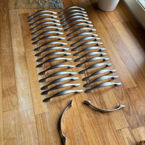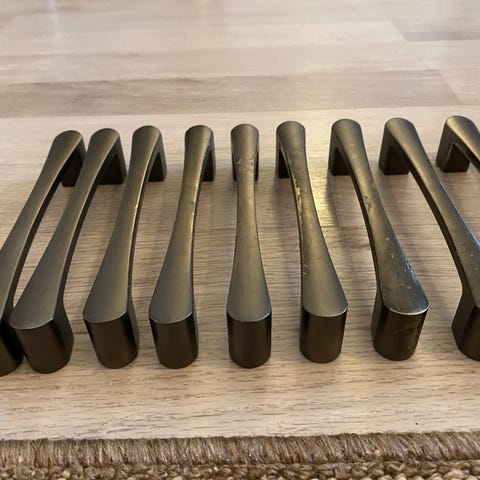 Myyntiin 15 kpl pitkiä vetimiä kaapinoviin (keittiö, makuuhuone, kylpyhuone). Vetimen pituus 414 mm. Väri matta-alumiini.