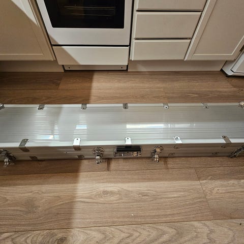 Käyttämätön kova aselaukku joutilaana ollut varastossa