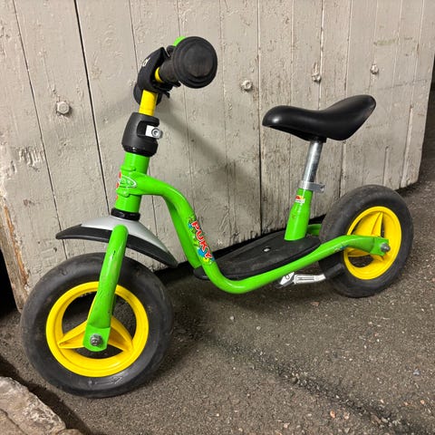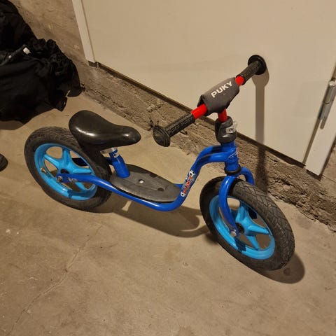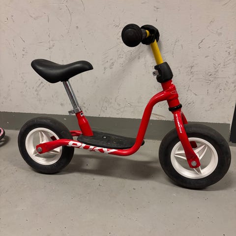 Puky potkupyörä lapsille, 10" renkailla. Rungon väri violetti ja vanteet siniset, musta satula ja seisontatuki. Potkupyörässä on matala runko, jalkataso sekä pehmustettu ohjaustangon suoja. Soveltuu pienten lasten tasapainon ja pyöräilytaitojen harjoitteluun.