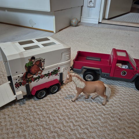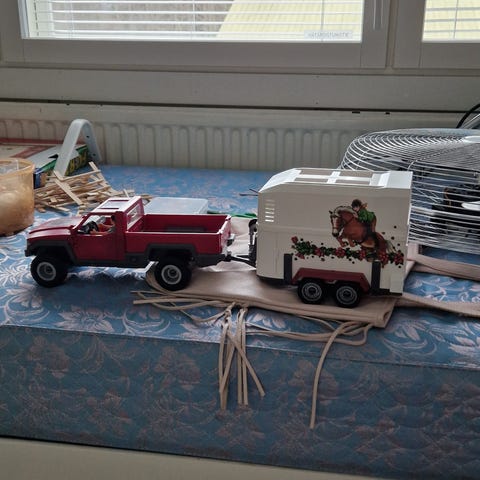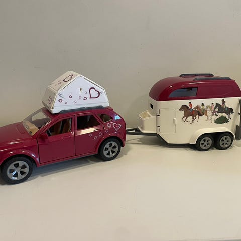 Schleich auto+traileri ja teltta