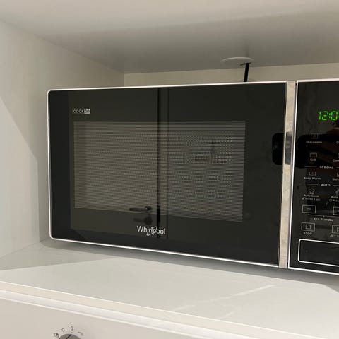 Noin 10 vuotta vanha Whirlpool mikroaaltouuni valkoinen. Vapaasti pöydälle sijoitettava malli, jossa etupaneelissa on ikkuna, pystysuora kahva ja painikkeet sekä säätönuppi oikealla sivulla. Sopii ruoan lämmittämiseen ja sulattamiseen kotitalouskäytössä. Valkoinen ulkokuori, etupaneelissa digitaalinen näyttö ja tuuletusaukot laitteen sivuilla.