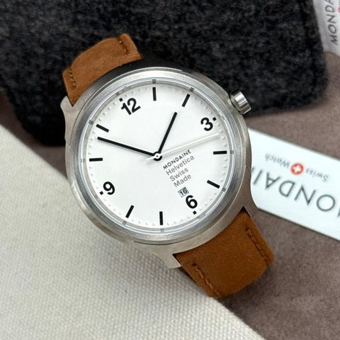 Kaunis ja laadukas Mondaine-kello, referenssin MH1.B1220.LB Helvetica-sarjasta. Kellossa on siististi muotoiltu kotelo, ja se käyttää korkealaatuista quartz-kellokoneistoa. Kellon luettava hyvin kontrastin ansiosta taustaan ja korostuksiin nähden. Lisäksi siinä on päivämääränäyttö kuuden tunnin kohdalla.Uusi ja käyttämätön!Kellon mukana toimitetaan mukava nahkainen kellonranneke.Toimitetaan pakkaus mukaan lukien kuten kuvassa näkyy.Kellokoneisto: quartz (Ronda, Swiss Made).Kotelon materiaali: teräsLäpimitta: n. 43 mm ilman kruunua.Rannekkeen pituus: n. 21 cm, mukaan lukien kello.Ikä: 2020+Toimitetaan vakuutetusti.Kuvat ovat osa kuvausta.