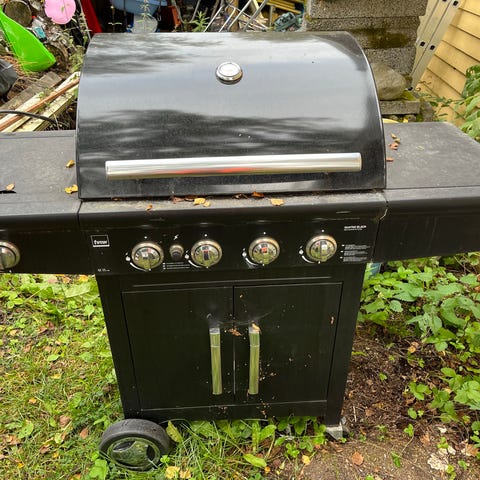 Ei varsinaisesti käytetty, ollut pihalla pari päivää ja sitten varastossa - toinen isompi saatiin lahjaksi. Hieman ruostetta, mutta helposti putsattavissa.