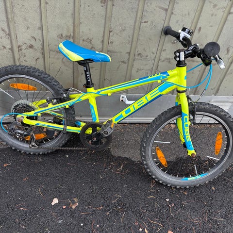 Cube Acid 200 lastenpyörä, jossa 20" renkaat. Rungon pääväri on sininen ja etuhaarukka sekä osia takahaarukasta ovat oranssit. Pyörässä on monivaihteinen takapakka ja takavaihtaja, levyjarrut edessä ja takana sekä maastokuvioiset renkaat. Satula ja satulatolppa ovat säädettävissä lapsen pituuden mukaan. Mukana alkuperäinen seisontajalka. Soveltuu lapselle, joka käyttää 20 tuuman kokoista lastenpyörää.