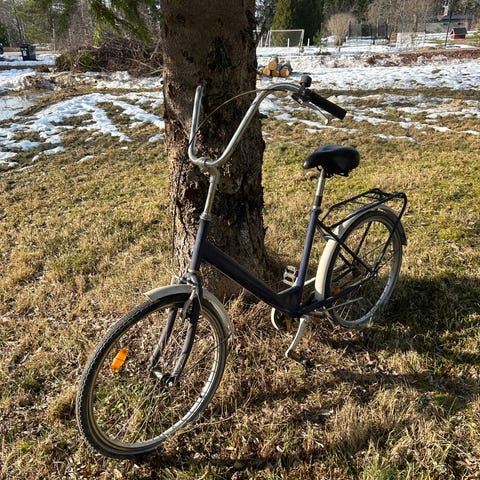 Lapsen kasvettua, tarpeettomaksi jäänyt maastopyörä.