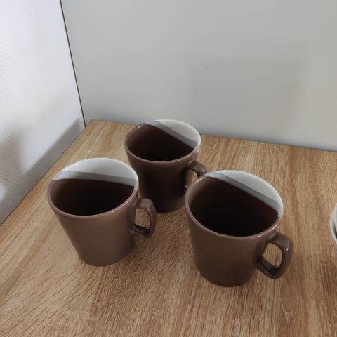 Hyväkuntoinen kahviastiasto 12kpl. Yhdessä mukissa kauneushaitta, näkyy viimeisessä kuvassa.