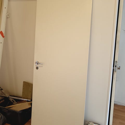 Valkoinen väliovi. Sopii käytettäväksi esimerkiksi asunnon huoneiden välisenä ovena. Ovi on tarkoitettu sisäkäyttöön. Koko 203x82. Karmit mukaan. Ei heloja.