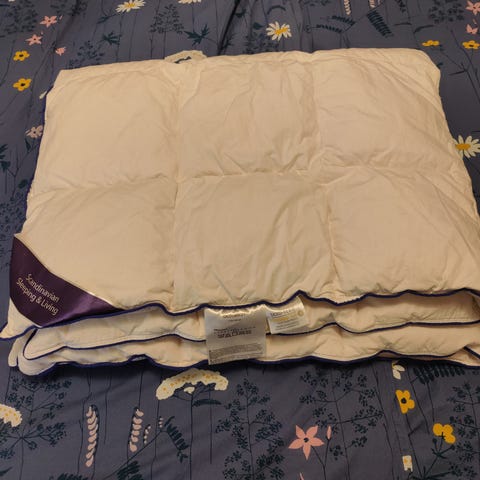 Untuvapeitto, koko 100 * 130 cm. Täyte 70% untuvaa, 30% höyheniä. Pesty kertaalleen tuoksuttomalla pyykinpesuaineella. Ostettu Hemtexistä. Merkki Nordun Lillesand. Nouto tai postitus.