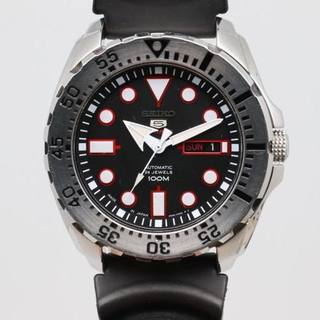 —// KUVAUS //—***Made in Japan**Malli: Seiko 5 Sports SRP601J1 Dracula Monster Miehet Diver AutomaattilukkoMateraali: ruostumaton teräs Kellon osoitin: Musta Kellon halkaisija: 45mm ( ilman oikkua )Soveltuvuus: jopa 15,0 cm rannekoko. Ei ylimääräisiä linkkejäLiike: Seiko 4R36 automaattinen liike Varaus: 40 tuntiaToiminnot: Ajan pitäminen, hacking, käsin ja automaattinen jännitys, liukuva sukellustähti, kiertävä kellonpyörän kehä, päivän ja päivämäärän näyttö, kaksikielinen päivämääräpyörä, hehkuvat osoittimet ja tuntimerkit—// TOIMITUS SISÄLTÖ //—Alkuperäinen laatikko: EiAlkuperäinen paperit: Ei —// TILANNE //—Kotelon kuluminen: ** [Joitain käytön jälkiä, hiusviivoja ja naarmuja. Muutamia iskettyjä reikiä, terälehtien kärjet ja kulmissa lohkeamaisia kohtia ]Kotelon takakannen kuluminen: * [joitakin hiusviivoja näytöksen takakannessa]Kiven lasin kuluminen: *(*) [muutamia hiusviivoja/naarmuja vasemmalla puolella ja kello 7:n paikkeilla. Näkyvissä oikeasta heijastuksesta] kellon osoittimet: -Kellotaustan kuluminen: *(*) [Joihinkin hiusviivoja ja naarmuja ulkoreunassa]Kruunun kuluminen: -(*) [joitakin hiusviivoja]Rannekkeen tai -korin kuluminen (kuten yllä mainittu soveltuvuus): ** [SEIKO S/S ranneke, 9 linkkiä kiinnitettynä. Kellon käyttökohdassa kulutusta, linkkejä, hiusviivoja ja kevyitä naarmuja]Lisäjärjestelyn kuluminen: - [SEIKO musta kumi-ranneke, Malli Z22, sopii jopa 20 cm ranteelle] TILANNE LUOKITUS STD:- None (Paras)* Huomaamaton** Pieni*** Keskinkertainen**** Raskas***** Vaurioitunut (Huonoin)(*) osittain tähti / välimuotoisen tilan— // YLEIS-ARVIO //—ARVIO: AARVIO-ohjeistus:N [Uusi] Tuote ei ole koskaan käytettyS [Erinomainen] Tuote lähes uutta vastaavassa kunnossa, hyvin vähän tai ei lainkaan kulumisen merkkejä.A+ [Erinomainen] Tuote hieman käytetty. Enimmäkseen hiusviivoja.A [Loistava] Tuotteessa pieniä naarmuja ja kulumaa, mutta näyttää hyvältäB+ [Hyvä] Tuotteessa naarmuja ja kohtalaisia kulumisen merkkejä.B [Kohtalainen] Naarmuja ja kolinoita kaikkialla. Silti toimivaV [Vintage] Tuote yli 10 vuotta vanha ja käytetty runsaasti. Merkkejä kulumisesta kaikkialla, mutta toimivaND [PELASTUS] Tuote ei toimi. Tarvitsee korjausta tai käyttöä osana—// TOIMITUSTAPA //—Lähettäjä: FedEx Economy tai vastaava—[[[ OHJEITA ASIAKKAILLE ]]]—[KUVAT]- Kaikki kuvat eivät ole muokattuja (paitsi sarjanumerot, jotka on piilotettu turvallisuussyistä). Kaikki kuvissa näkyvät viat eivät ole mainittu kuvauksessa mutta ovat kuvissa; ne huomioidaan kuvauksessa. Kuvat kertovat enemmän kuin tuhat sanaa, joten pyydämme katsomaan kuvat huolellisesti ennen tarjouksen antamista, sillä ne ovat osa kuvausta. Arvostan asiakassuhdettani, joten en halua, että yllätyt, kun vastaanottaminen ei ole toivottua.[TARKKUUS]- Tarkkuus testataan jokaisessa kellossa vaakasuorassa asennossa (datasilmä ylöspäin) täydellä varmuusvaraa säädöllä ja katsotaan riittäväksi ajan pitämiseen ennen myyntiin lähettämistä. Tekijöitä, jotka voivat vaikuttaa tarkkuuteen, ovat ranteessa vietetty aika, käsien liike ja jousen jännitys. Yli 10 vuotta vanhoilla kelloilla voi olla suurempi tarkkuusero ja epäjohdonmukaisuus mekaanisen kulumisen vuoksi.[AUTHENTICITY]- Kaikki myymäni kellot ovat aitoja. Pyrin merkitsemään kaikki Aftermarket-osat, joita pystyn tunnistamaan, mahdollisimman hyvän tiedon mukaan. Arvioi kohde kuviin perustuen, sillä ne ovat tode
