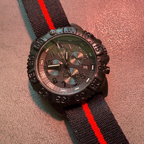 Kaunis ja vankka Luminox-kello Sport Timer -sarjasta. referenssinumero XS.0911. Kellon kotelo on terästä ja se toimii kvartsikoneistolla (515, Ronda, Swiss Made). Varustettu luminoivat viisarit ja indeksit sekä päivämääränäytöllä klo 3. Hyvin luettava taustan värin ja viisarien/indeksien kontrastin vuoksi. Lasin materiaali on safiiri.Uusi ja käyttämätön!Kello on mukavalla teräksisellä rannekkeella.Toimitetaan näytettyjen (tyhjien) tarvikkeiden kanssa.Koneisto: kvartsinenKotelon materiaali: teräsLasin materiaali: safiiriHalkaisija: noin 42 mm ilman kruunuaPaksuus: noin 13 mmRannekkeen pituus: noin 20 cm mukaan lukien kellon.Ikä: 2020+Toimitus on vakuutettu.Kuvat ovat osa kuvausta.