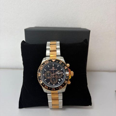 Rannekello LORENZ - Uusi tehtaalta, laatikossa ja alkuperäisten asiakirjojen kanssa.Viite: LZ21062BB Koneisto: kvartsikoneisto Kotelo: terästä - 42 mm Kellotaulu: samppanja-värinen indekseineen - päivämäärä klo 3 Lasi: mineraalilasi Lunetta: terästä - sileä Vedenkestävyys: 5ATM (50 m) Takakansi: kiinnitysruuvilla Kruunu: paineistettava Ranneke: Nahka - solki