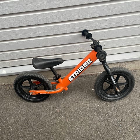 Strider potkupyörä, mukaan suksisetti talveksi potkuttelukautta jatkamaan. Ollut lahdella lapselli eli naarmuja jonkin verran. Toimii silti moitteetta. Pidempi penkinvarsi myös mukaan.