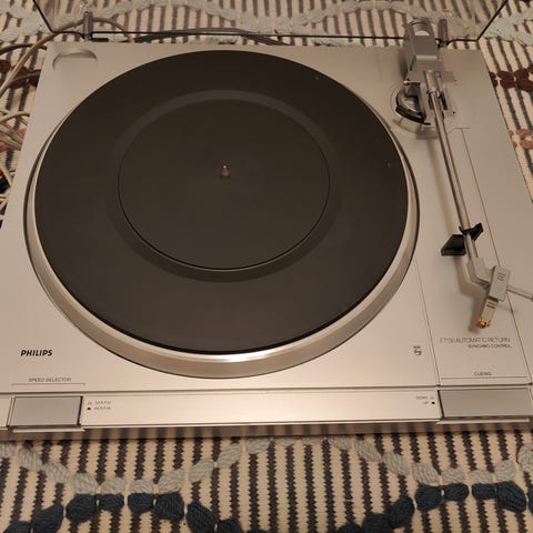 Lähes uudenveroisessa kunnossa!Täysin automaattinen!RPM säädetty keskelle.Tällä on säätö pitchilleSileä karttirungon/noston (tonearm) liu'utusPuhdistettu ja voideltuPölysuojus on täydellisessä kunnossa!Katso kaikki yksityiskohtaiset kuvatDIN-RCA -liitin mukana.Huolellisesti toimitettu!Laite tukee nopeuksia 33 1/3 ja 45 rpm, ja siinä on automaattinen äänivarren laskeutuminen, kytketty nopeuden valitsimeen.Pitch-säätöä voidaan säätää noin yhden puolihiiren (6 %) sekä 33 1/3 että 45 rpm nopeuksilla.TEKNISET TIEDOT:Sähkösyöttö: AC, 50 Hz, 220 VAjo: 4-poleen synkronimoottori radiaalielastisella ripustuksellaLevytin: magnetoitumaton, 1,8 kg, 270 mmNopeudet: 33, 45 rpmPitch-säätövaihtelu: 6 % sekä 33/45 rpm nopeuksillaWow ja flutter: alle 0,09 %Rumble: -59 dB (painotettu)Äänivarsi: vääntymiselle vastustuskykyinen, putkimainen alumiini itsesäätävällä nivellaakerillaKartiokannake: irrotettava, sopii kaikki 1/2" kartat 2–10 gPaino: 4,3 kgMitat: 329 × 274 mm (+ 28 mm äänivarren yliojennus)Huolellisesti toimitettu45 rpm -adapteri pyydettäessä
