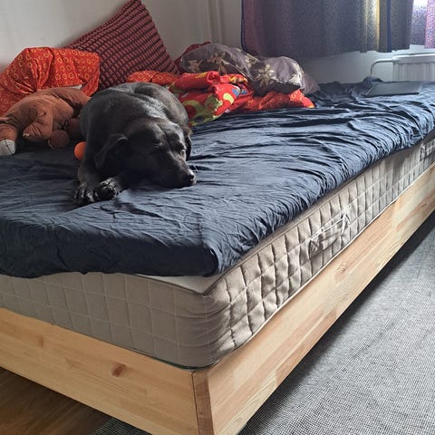 IKEA Snarum runkopatja, hyvässä kunnossa. Myydään pois muuton tieltä. Sängyssä IKEAn Burfjord-malliset jalat, joiden OVH 40€.