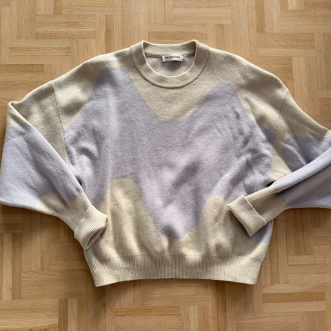 Myydään Marimekon Lokki neule. Vaaleanlila - valkoinen neulos. Koko L. Uudenveroinen. Pitkä malli, itsellä ulottuu takapuolen päälle. Itselleni saisi olla koon isompi, että neule olisi enemmän over size ja istuisi näin alaosasta paremmin.