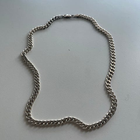Hieno 50cm hopeinen kaulakoru. 925 hopea. Lenkin paksuus noin 7mm. Paino 47g.