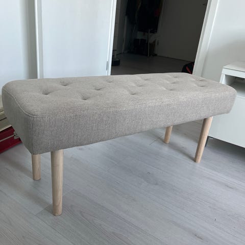 Myydään todella vähällä ollut siisti penkki kenkätelineellä. Istuinosa harmaa ja muuten puunvärinen.