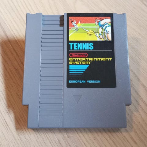Nintendon ensimmäinen tennispeli vuodelta 1985. Ranska julkaisu, englanninkielinen PAL. Toimii suomikonsolissa, testattu.