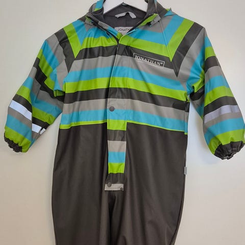 Myydään hyvässä kunnossa oleva, yhdellä lapsella ollut Jonathanin sadehaalari koossa 104. Haalarissa ohut vuori. Saumat ja kangas ovat ehjät. Oikeassa lahkeessa on haalea ruskea jälki, mutta ei estä käyttöä. Molemmat jalkalenksut ovat myöskin ehjät ja tallessa.
