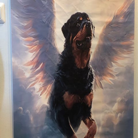 Maalattu koirataulu, koko 46x56cm.