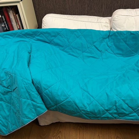 Parisängyn päiväpeitto. Ollut käytössä sekä 160x200 että 180x200 sänkyjen kanssa.