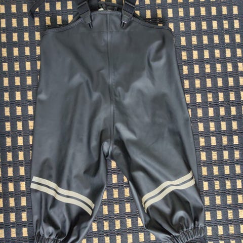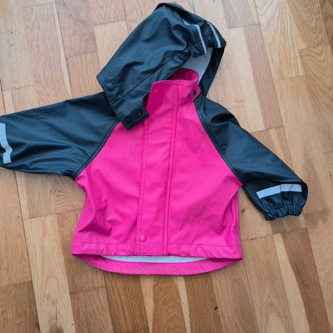 Myydään lasten erittäin hyväkuntoiset sadetakki ja -housut. Housut on tummansiniset, takki vaaleansininen/turkoosi. Housuissa ja takissa monia heijastinyksityiskohtia. Huppu irroitettava, kiinni neppareilla. Jalkaremmit joustavaa kuminauhakangasta, alkuperäiset ja virheettömät. Kokoa 74/80.