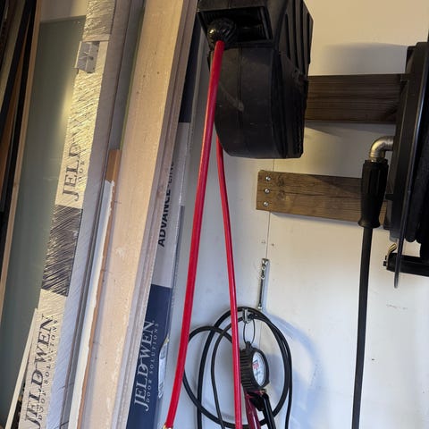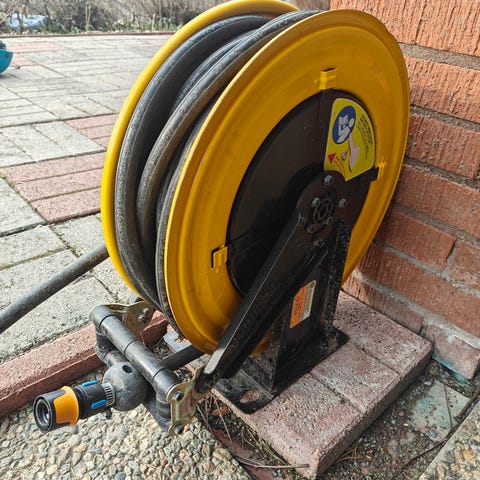 Würth DGA 18-M letkukela paineilmaletkulla. Seinälle tai kattoon asennettava koteloitu kela, jossa punainen paineilmaletku. Tyyppikilven mukaan maksimi käyttöpainetta 15 bar. Soveltuu paineilmatyökalujen ja kompressorin yhteyteen työpajassa, autotallissa tai muussa työtilassa, jossa tarvitaan siististi kelautuvaa paineilmaletkua.
