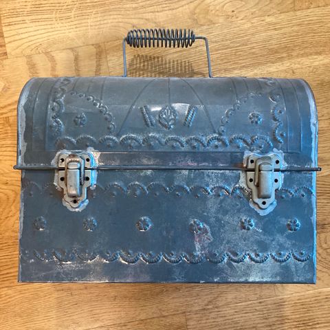 Oy Sumatran Kahvi Ab arkku-tyylinen peltirasia. Kaunis ja hyväkuntoinen, korkeus n.12cm, syvyys n.12vm ja leveys n.18cm.