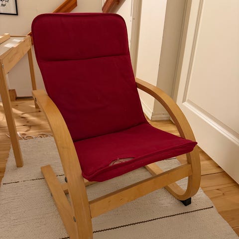 Annetaan lasten tuoli. Kaipaa ainakin maalia, kuten kuvista näkyy.
