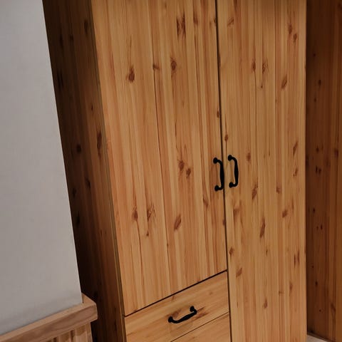 2 hyllyä alhaalla.Ovessa halkema näkyy kuvissa.
