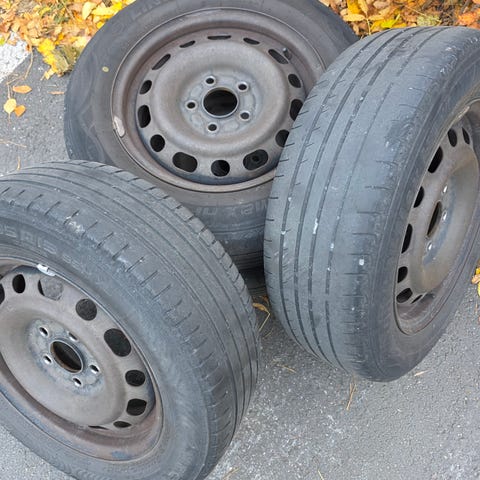 Linglong Greenmax eco touring 195/65 R15 -renkaat vanteilla. Neljä rengasta alumiinivanteilla ja yksi vararengas peltivanteella. Renkaiden kyljessä merkintä 195/65 R15. Sopii autoihin, joissa on vastaava rengaskoko ja vannejaolla yhteensopivat vanteet. Vanteissa viisipuolainen alumiinimalli sekä yksi perinteinen peltivanne. Tarkemmat tiedot, kuten pulttijako ja keskireikä, on hyvä varmistaa omasta autosta tai vanteesta ennen käyttöä.
