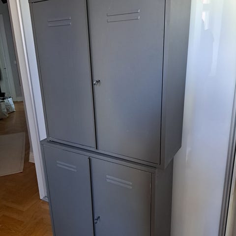 Myydään kaksi Ikean peltikaappia. Toisessa kaapissa takalevyssä reikä.