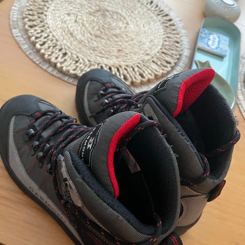 Halti vaelluskengät, koko 40. Väri musta punaisilla yksityiskohdilla ja nauhoilla. Matalavartinen malli, jossa karkea pohjakuvio vaellukseen ja ulkoiluun. Sopivat vaellukseen ja muuhun ulkoilukäyttöön. Muutaman kerran käytetty oli väärä koko.