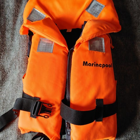 Alle viisi kertaa käytetyt pelastusliivit, uutta vastaavassa kunnossa.