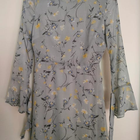 Kauniisti laskeutuva Vila mekko koko 34, polyester. Hinta 10e.
