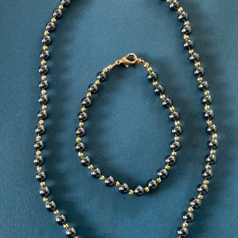 Kauniit helmet ja rannerengas alkuperäisessä pakkauksessaan. Laatukorut pilkka hintaan, säilytetty omissa rasioissaan.