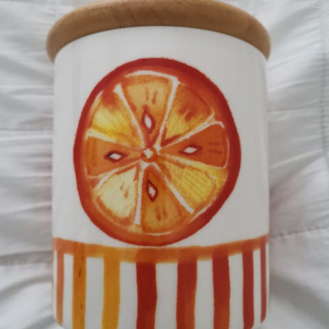 Arabia säilytyspurkki appelsiini-kuvioitu puukannella