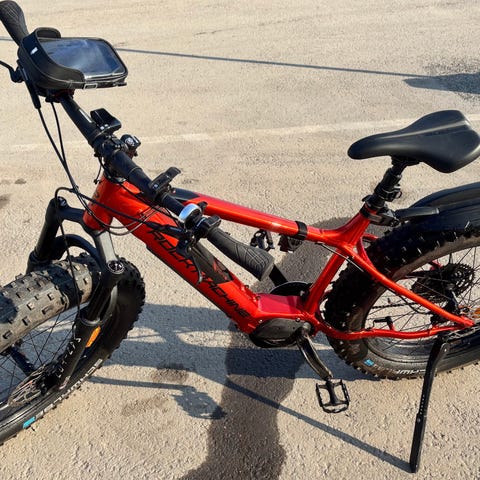 Viime syksynä hankittu sähköfatbike. Muutama maalikolhu, muuten moitteeton. Ajettu 530 km. Mukaan lokari eteen ja taakse.