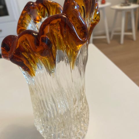 Käytetty mutta ehjä kirkas lasinen maljakko. Kapea ja korkea malli, sopii esimerkiksi yksittäisille kukille tai pienille kimpuille. Koristeellinen, kaiverrettu kuvio sivuilla ja pyöreä jalusta, joka antaa maljakolle tukevan pohjan. Valmistettu läpinäkyvästä lasista, helppo yhdistää erilaisiin sisustustyyleihin. Koko ~ 22x6,5cm