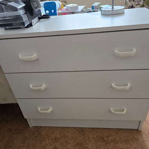 Perussiisti lipasto kolmella laatikolla. Pieniä jälkiä (kuvat). Laatikot vaatinee kiristelyä, jää uudelle omistajalle. Kanto ulos kerrostalos 1. krs. 8 porrasta kannettavana.