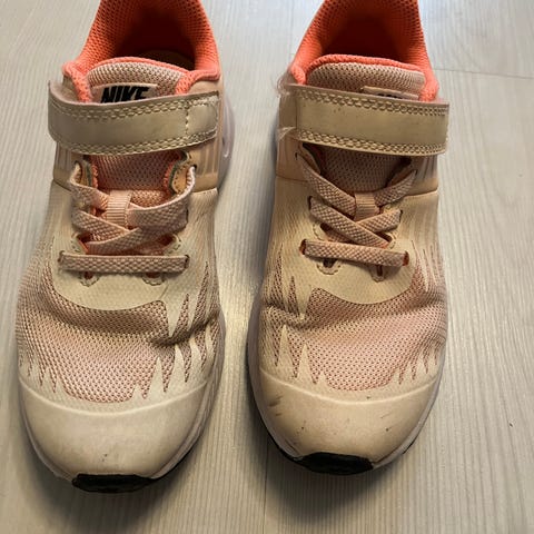 Nike lasten lenkkarit, koko 31. Vaaleat kengät, joissa tarranauha ja nauhat jalkapöydän päällä. Ollut meillä vain sisäkäytössä muutamaan otteeseen. Joitain jälkiä, kengille ei ole tehty putsausta. Soveltuvat arkeen ja liikuntaan lapsille.
